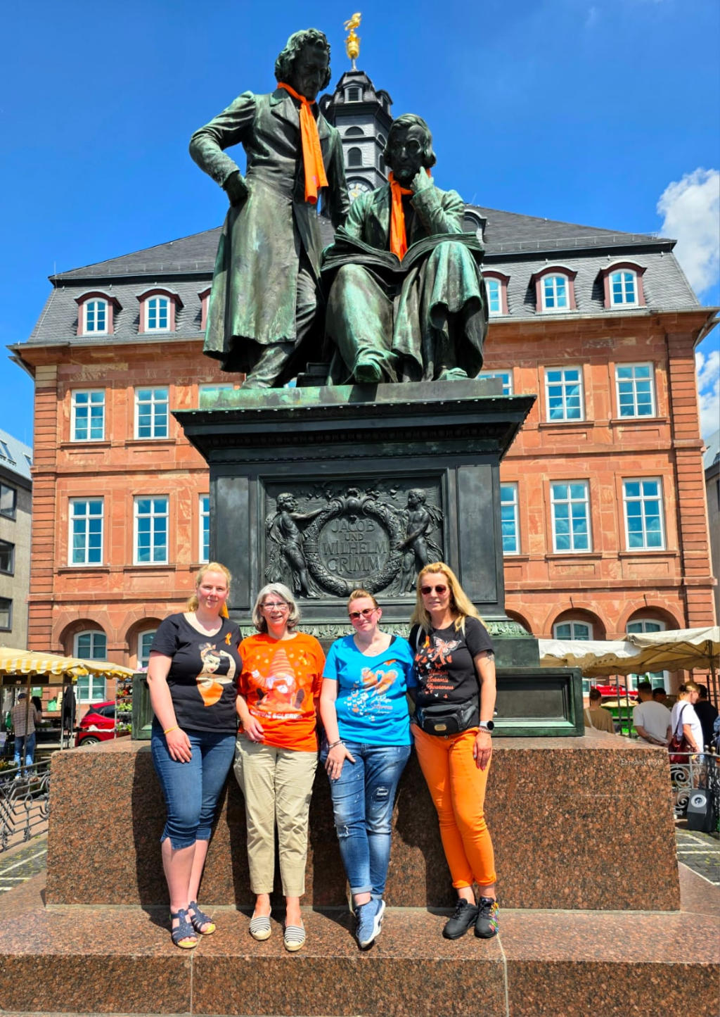 In Hanau wurde auch in diesem Jahr wieder das Brüder-Grimm-Denkmal am Rathaus mit einem oran-
